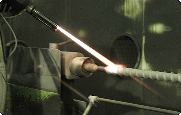 Alloy powder spraying to the whole surface of screw under high pressure and high velocity (3-4 times sonic). The maximum hardness can achieve to HV 1100 to 1400.